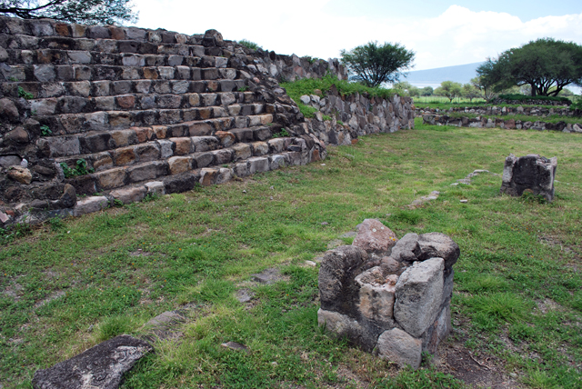 Este es otro elemento poco frecuente en la arqueología del Occidente de México, consiste en una estructura construida con un sistema similar al que se empleó en los edificios rectangulares: un núcleo de tierra cubierto con piedras lajas.