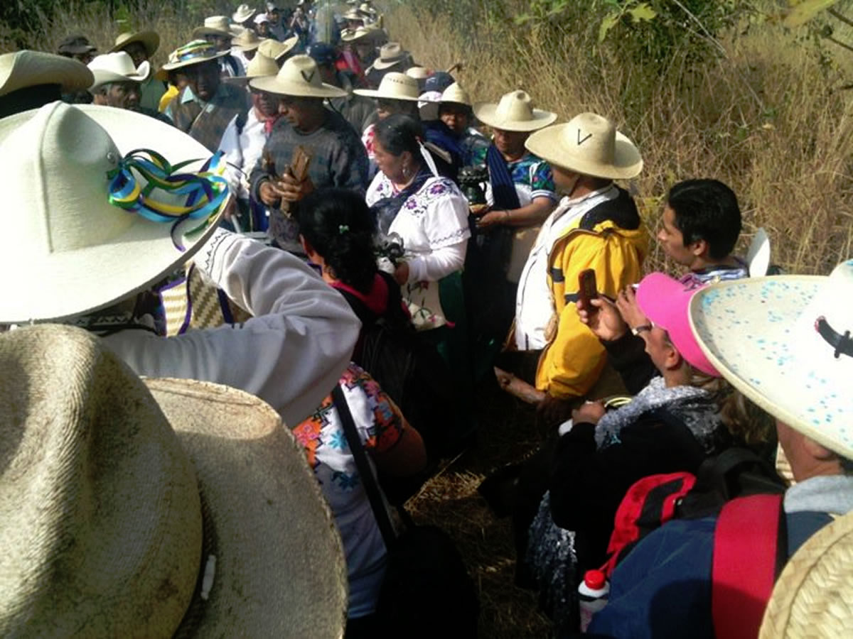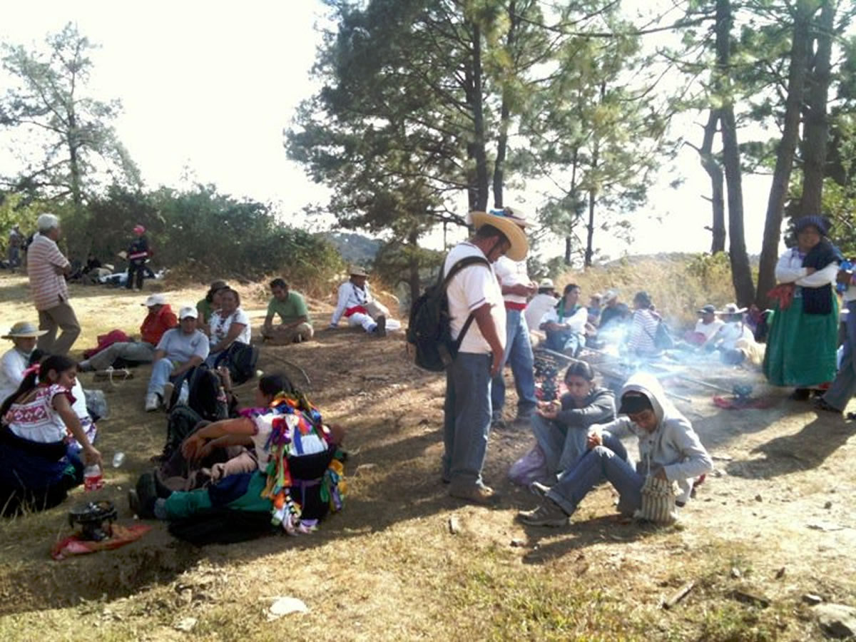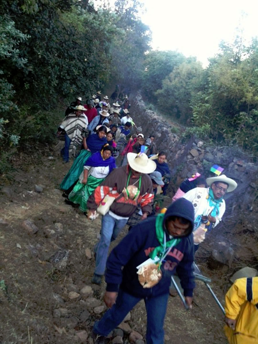 Comisionados de San Andrés Coru reciben en el cerro a Caravana del Fuego Nuevo.