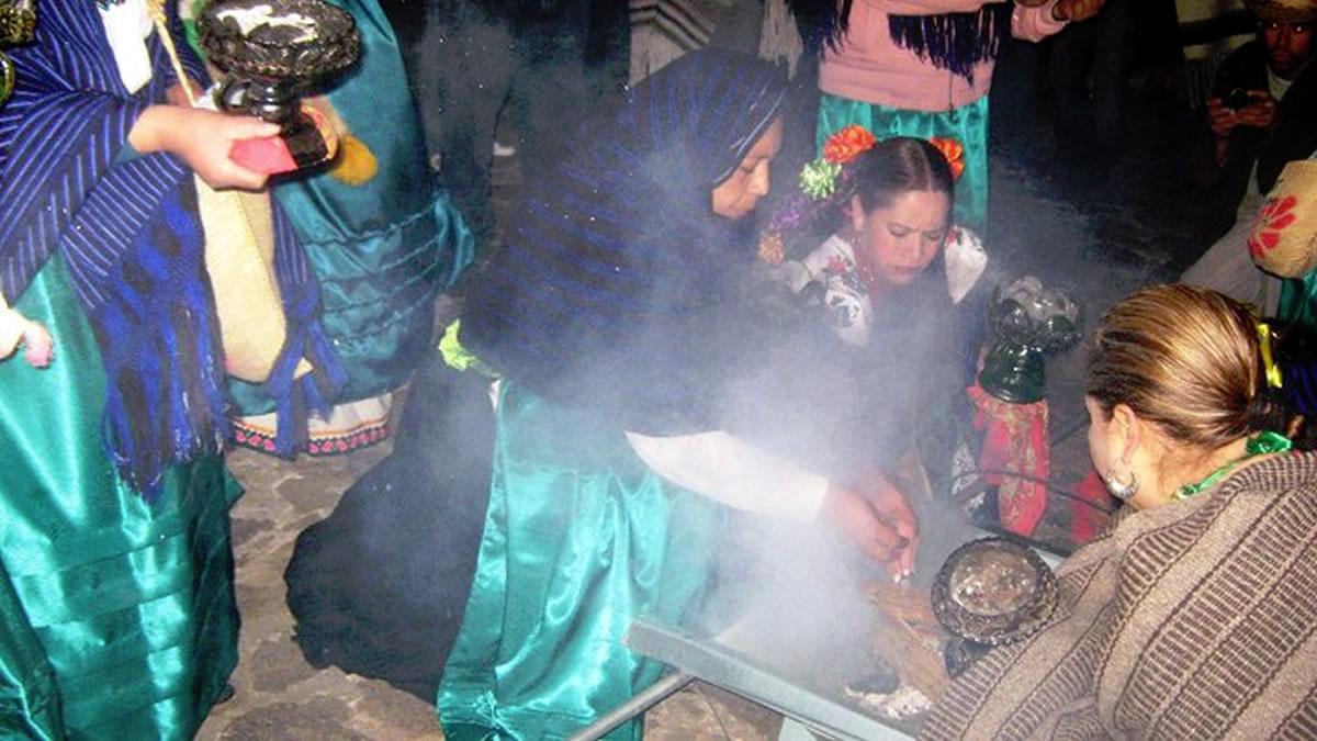 Un breve alto: El Ch'upiri (Fuego) recibe su alimento de encino de manos de los T'erunchiti de Uruapan