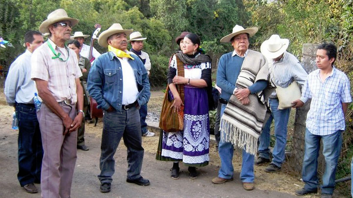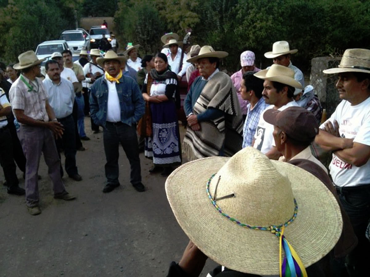 Recepción en Tingambato, por las autoridades, de la Caravana del Viejo Fuego, qu'e llegó 13 horas después de haber salido. En la foto se aprecia a Naná Rocio Próspero y a su esposo Tatá Irineo Rojas.