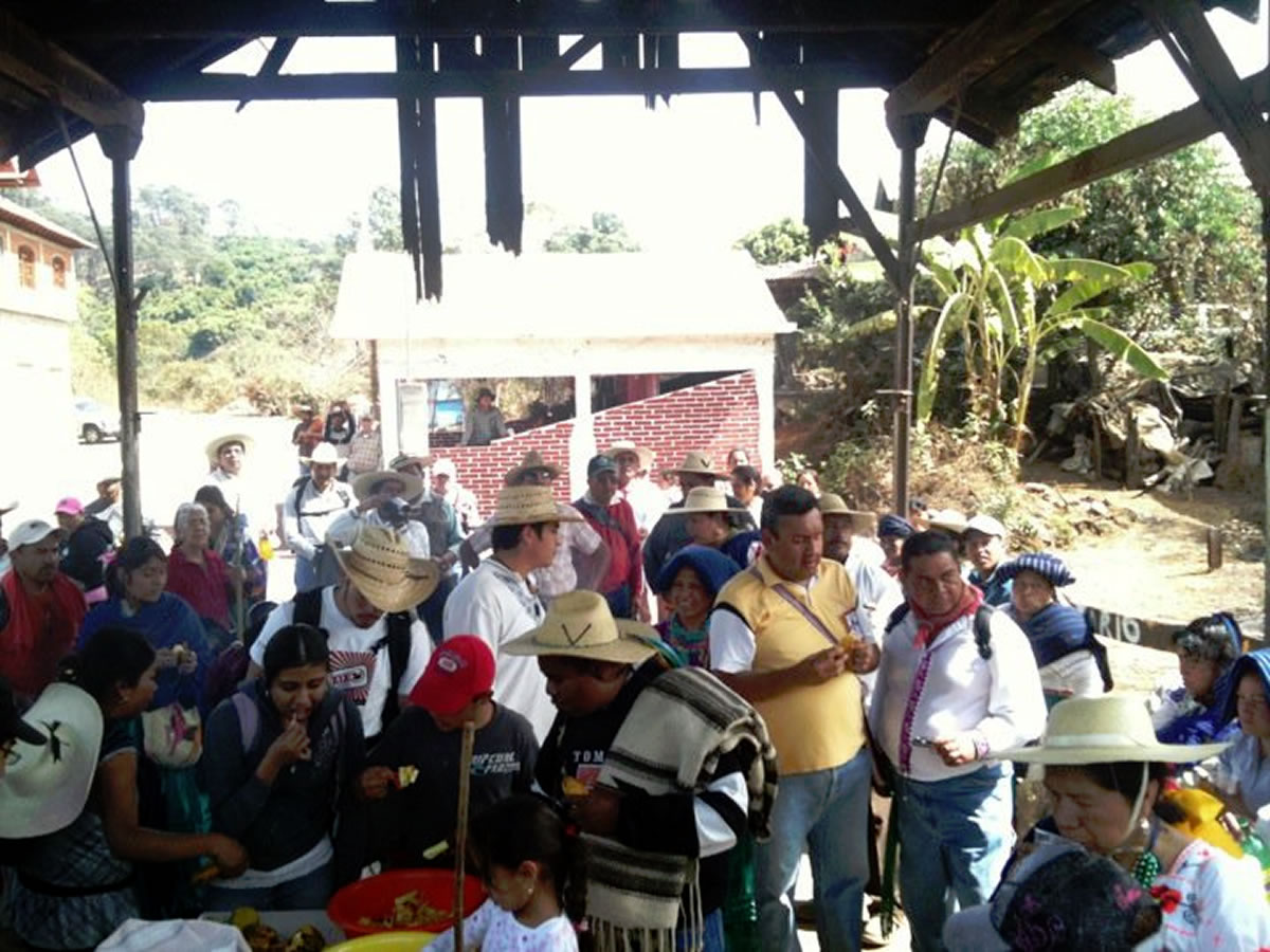 Refrigerio de la caravana del Fuego Viejo, en la vieja estación del tren en San Andrés Coru.