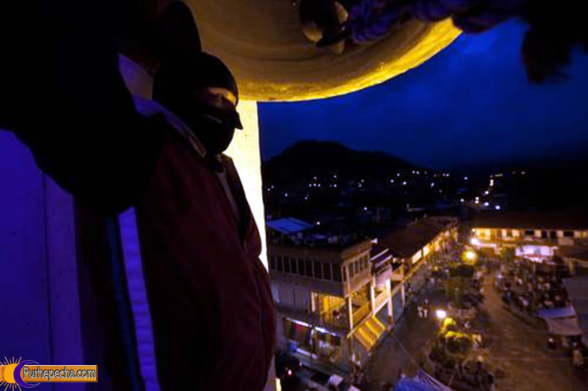 Los hombres de Cherán han conformado una peculiar e improvisada policía de autoprotección. Desde las alturas del campanario de la iglesia de San Francisco se vigila la operación de todos quienes integran la ronda comunitaria que recorre todo el tiempo las calles para salvaguardar la seguridad y el orden del pueblo. No es el único aporte de la iglesia en esta lucha, en la que ha estado activa ante la depredación de los bosques de este Pueblo Purépecha, pues también ha incidido en disuadir las diferencias partidistas, en aras de la defensa de los bosques.
