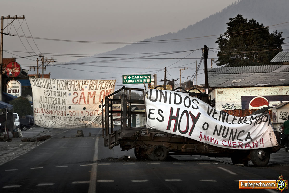 ¿Se imaginan un pueblo de 20.000 habitantes cercado por barricadas y con una hoguera prácticamente en cada esquina? Podría ser una estampa de las guerras africanas de las décadas pasadas o tal vez del México que hizo la revolución a principios del siglo XX. Pero así es como se encuentra desde hace casi cuatro meses Cherán, un municipio de cerca de veinte mil habitantes en el centro-occidental estado de Michoacán, a 411 km de la capital mexicana. Hartos de la pasividad de los gobiernos locales, municipales y federales, el 15 de abril, sus pobladores, indígenas Purépechas decidieron autoorganizarse y establecer barricadas con sacos de arena, troncos y piedras en cada entrada del pueblo y 179 fogatas, casi en cada esquina, para protegerse de los criminales que asaltaban a la comunidad. Todo empezó hace dos años y medio, cuando empezaron a llegar los talamontes a sus bosques para robarles la madera. Desde el 2008 hasta ahora han devastado 20 mil de las 28 mil hectáreas de bosque comunal, el 80% de su territorio.