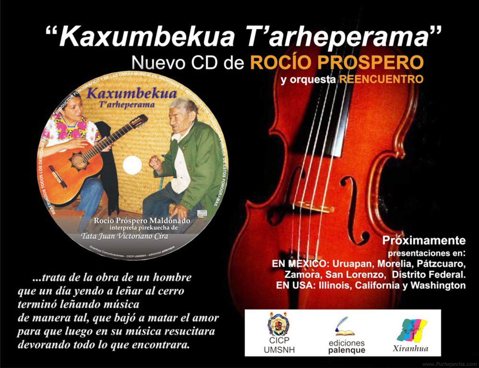 El Centro de Investigaciones de la Cultura P'urhepecha de la UMSNH, Ediciones Palenque, La Comunidad Indígena P'urhépecha de San Lorenzo, Xiranhua Comunicaciones y -www.Purhepecha.com, presenta el CD-Libro "Kaxumbekua T'arheperama", material que contiene Pirékuaecha de Tata Juan Victoriano Cira (†), interpretadas por la Piréri Naná Rocío Próspero y el Grupo Reencuentro y del maestro José Alfredo Barrera Próspero.