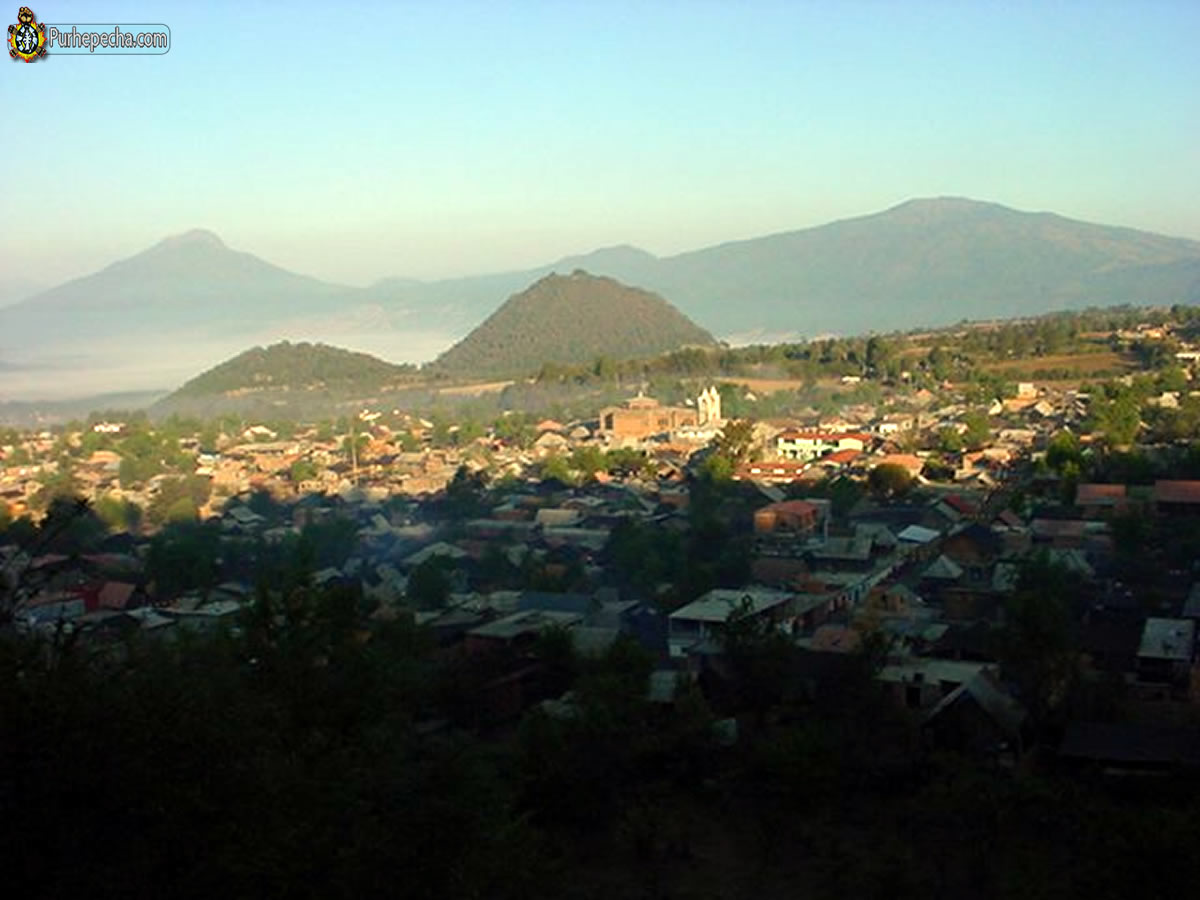 Descripción de la foto: Si observan la sombra que cae en el Pueblo de Comachuén, producto del serro de la "virguen", es la razón por el cual tiene por nombre K'umánchen, vocablo p'urhé que significa "Lugar de Sombra".