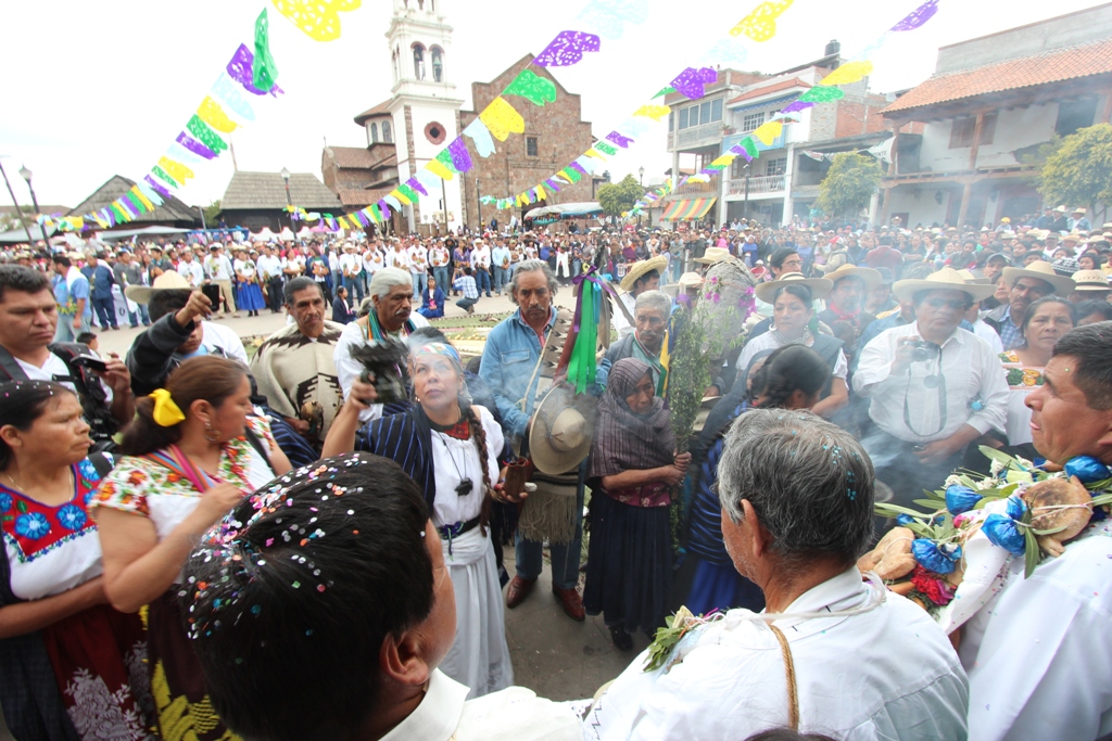 Asimismo los médicos tradicionales de Cherán, realizaron el ritual de alusión y respeto a los puntos cardinales, a las deidades indígenas, a la madre tierra y al supra mundo, como elementos constitutivos de la cosmovisión p´urhépecha y símbolo de buen augurio para que el nuevo gobierno se guíe por el camino de la sabiduría y el servicio a la comunidad.