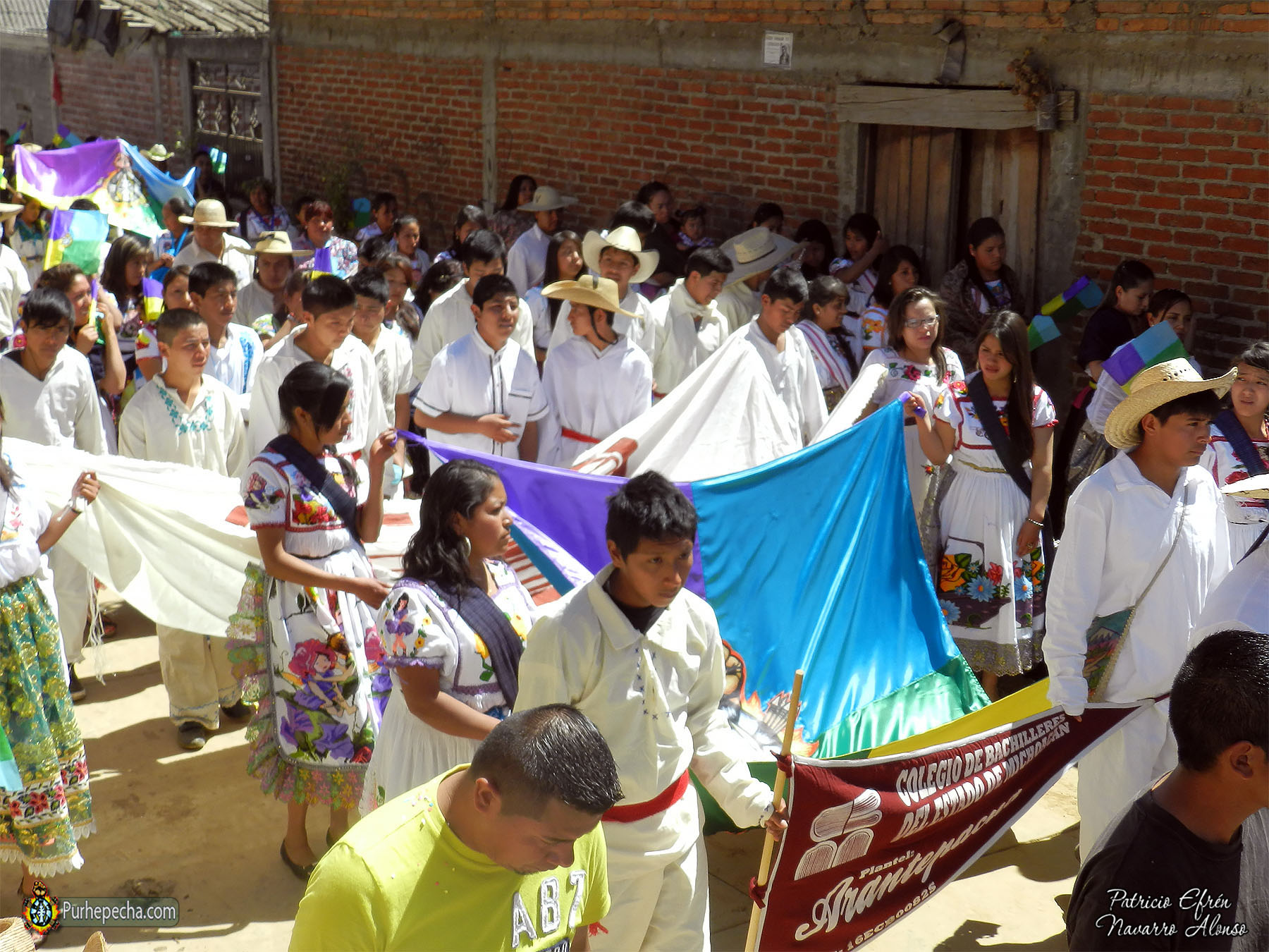 Posteriormente se hizo un recorrido por toda la comunidad, entre alegría, música, baile y una energía de unificación cultural, en un marco donde mujeres, hombres y niños vistiendo su atuendo tradicional creando un ambiente completamente Purépecha, tras la llegada de los símbolos y del contingente de comunidades como: Uricho, Uruapan representando por sus barrios, Tarejero, Pátzcuaro, Pichataro, Tirindaro, Nahuatzen, Chilchota, entre muchas otras.La comunidad de Arantepacua ofreció alimentos a todas las personas que asistieron, dando una demostración de su exquisita gastronomía, así como su hospitalidad y calidad característica de los Pueblos Purépecha.