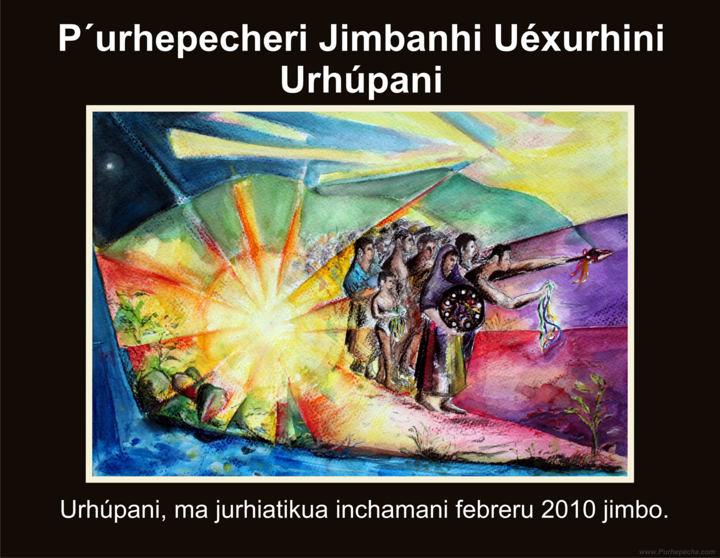 T’erunchicha, Juchari Tatá K'erhicha, Purhepecha.com.mx ka uani p'ichjpiri Urhúpan anápuecha p'imarhixakaksïn parhakisïn iámenduecha andáparakuntaka ka pambentsïn in juchari K'eri P'urhé k'uichikuarhu "Juchari Kurhikaueri K'eri K'uinchikuarhu" Iasï i uéxurhini ukuarhiati ma jurhiatikua inchamani febreru 2010 jimbó jiní Urhúpan isï. Xarhinkuche uandaápaka Naná Kuerhojperini, Tatá itsïn ka Tatá Chijpirini jininki uenaka uetseni ima iurhekua kupatitsio. Jimache uerhaakani ka jatsiakache ma parhanguani jiní Urhúpan terúpeni parhache erhontani Juchari Chijpirini Jimbani ma chuskutakuarhu. Ixuksïn erhontaxaka ka ambuakatsï pakorheni Juchari Chijpirhini Jimbani jini juchari ka charhi k'umánchekuecharhu ambe.