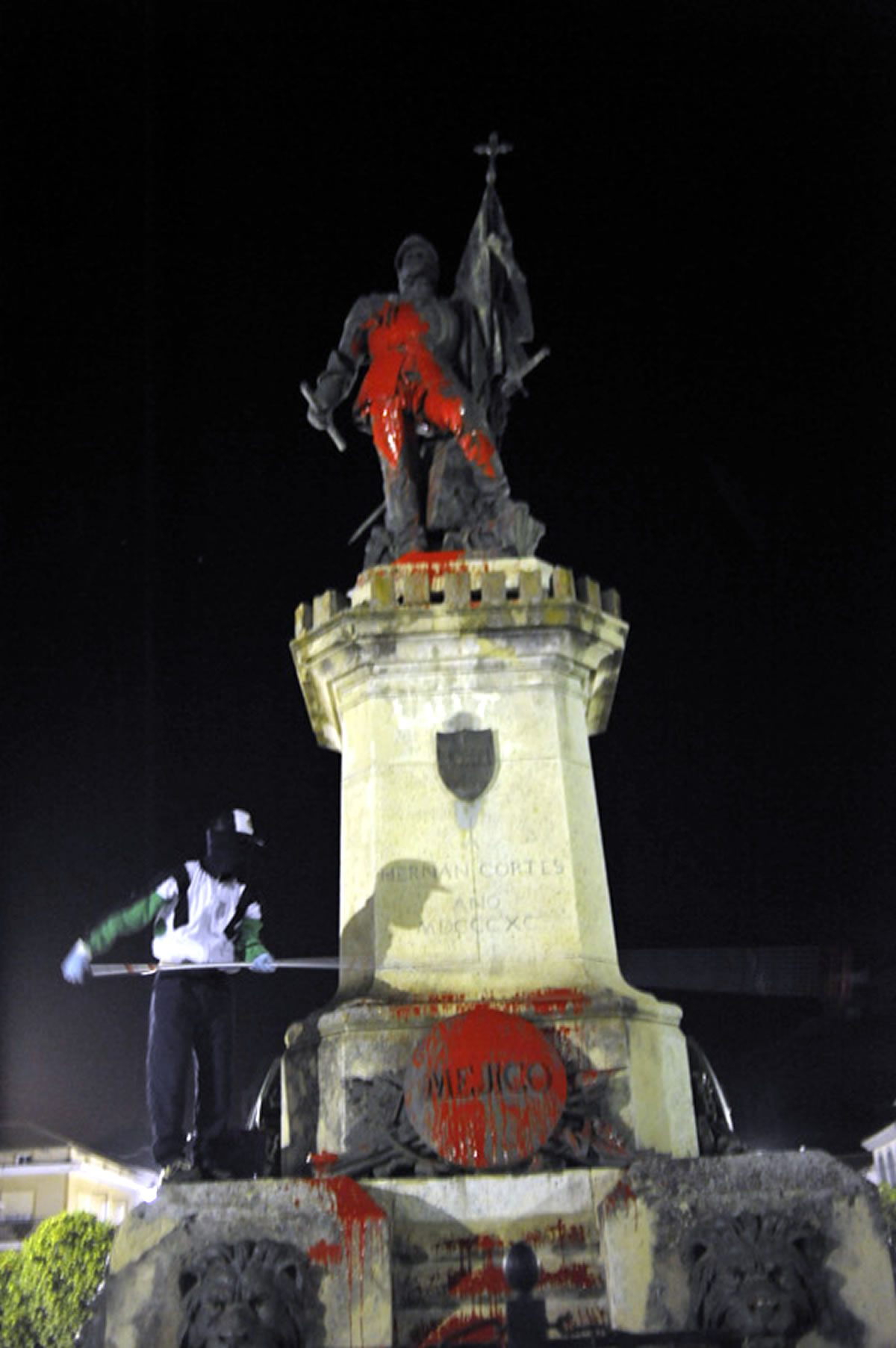 El miércoles pasado en la tierra natal de Hernán Cortés, tuvieron a bien, ciudadanos anónimos, pintarrajear a este genocida y asesino como lo muestran las fotografías que hoy se distribuyen en la red. La primera reacción fue de la embajada mexicana en España demostrando la solidaridad con el pueblo de Extremadura, Medellín diciendo que: “México es un país orgulloso de su doble herencia indígena y española”, por eso, “quien realiza ese ataque quiere negar al padre o la madre” de los mexicanos…(sic) quiero pensar que para quedar bien, lo dijo ese bien nombrado señor embajador. Porque padre o madre de los mexicanos, será de él o de uno que otro que todavía se sienten hijos de Cortés como muchos del gobierno actual.