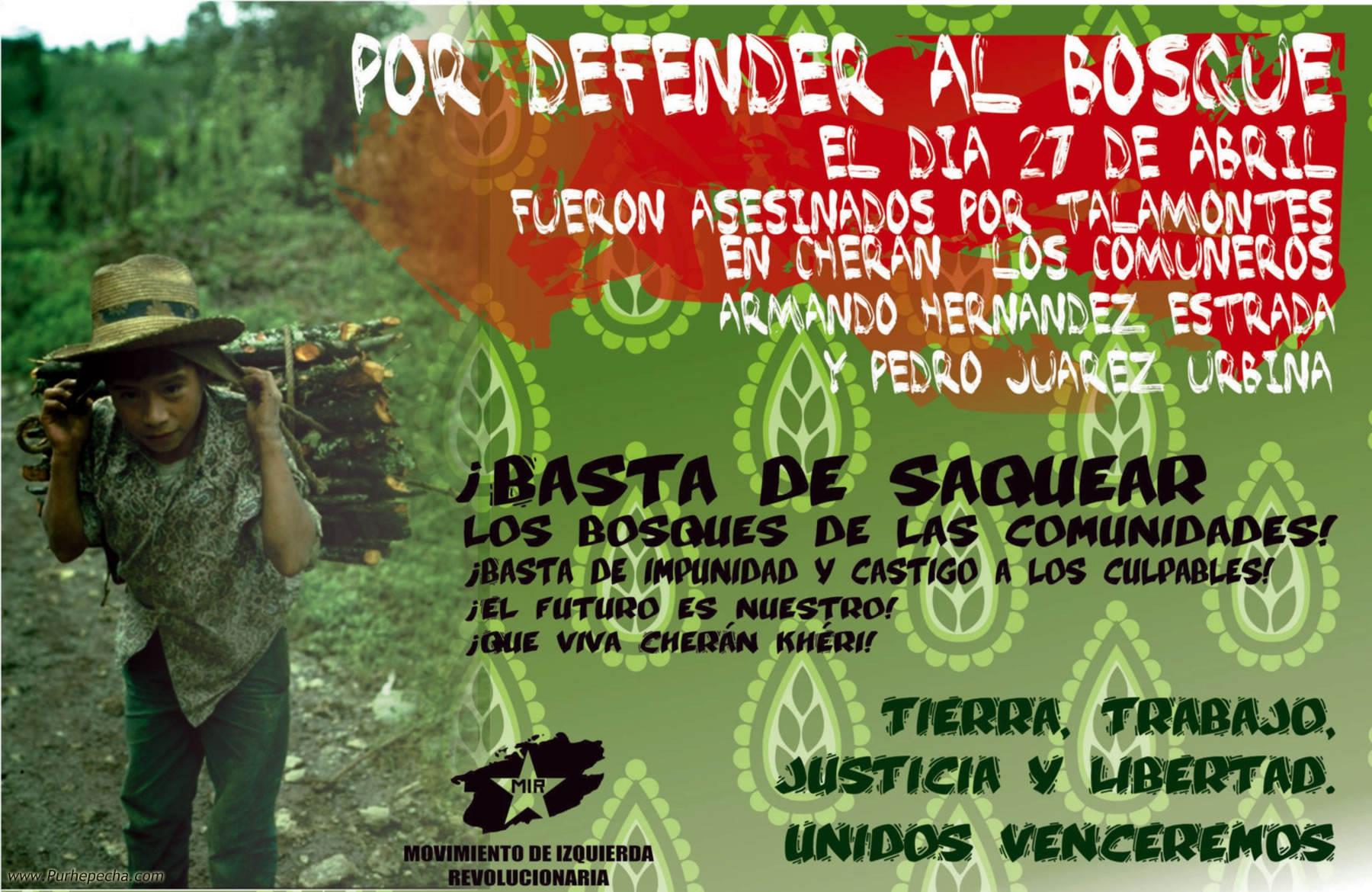- Hacemos la denuncia pública de los crímenes cometidos contra las comuneros y al bosque de Cherán.