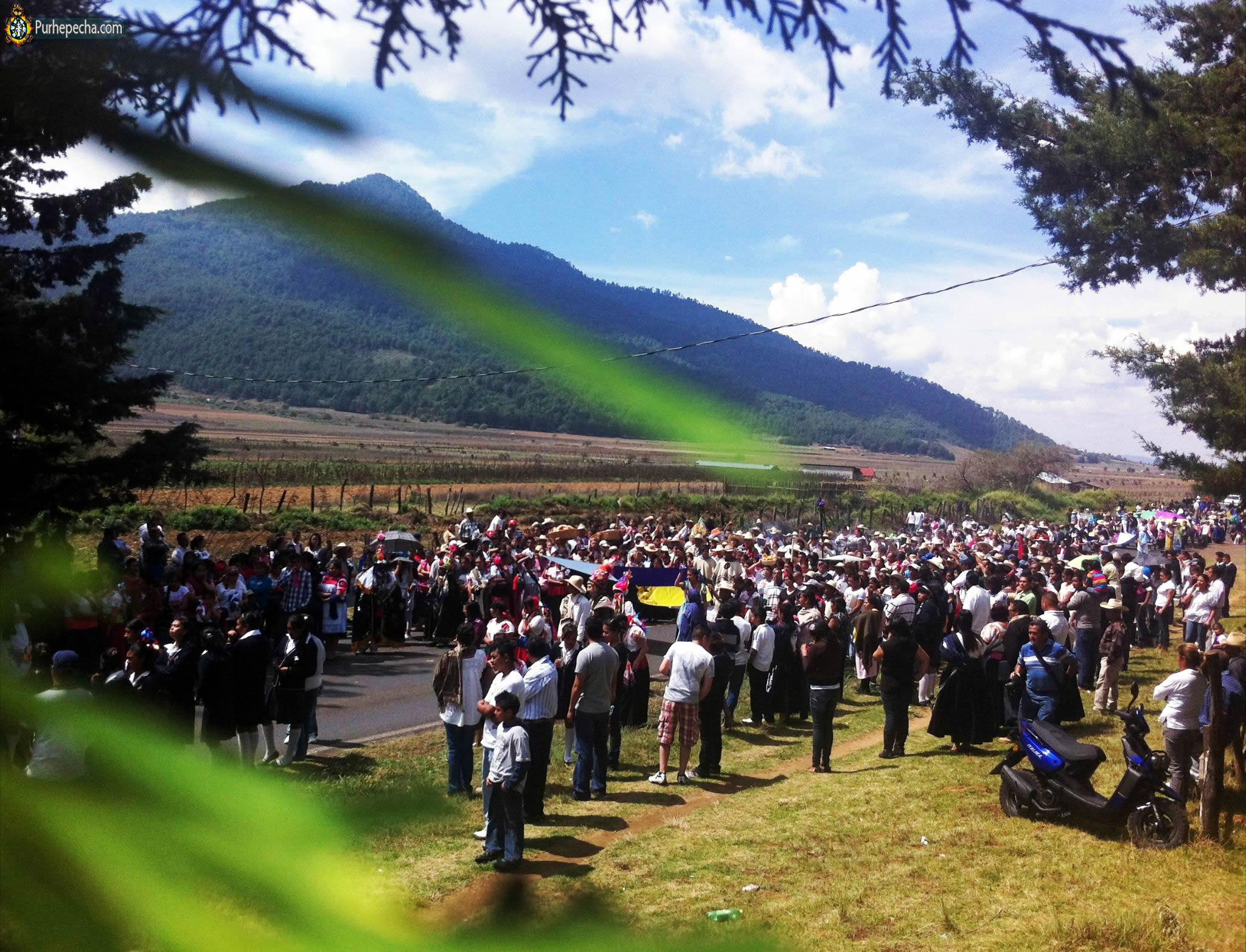 Una presencia que no pasó desapercibida fue la de niñas y niños, jóvenes y señoritas de las diversas escuelas que uniformados, con sus banderines y banderas P’urhepécha hicieron acto de presencia y caminaron bajo Tatá Jurhíata, al lado de sus maestras y maestros. Muchos pequeños con sus trajes de la danza de los Soldaditos, bellamente ataviados. Llama la atención la cantidad de matrimonios muy jóvenes llevando a sus pequeños con sus trajes, muy orgullosos de mostrarse con tanta dignidad, iurhítskiris de Turícuaro estudiantes del CEBETA de Nahuatzen, en fin...